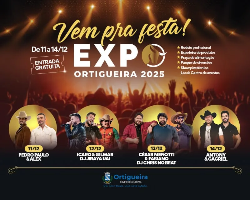 Para abrir a festa, o show é da dupla nacionalmente conhecida, Gilberto e Gilmar, mais Dill e banda. A abertura oficial será às 20h30 desta sexta. No dia 6/12, sábado, segundo dia de festa, o show fica por conta da dupla sucesso de hits, Pedro Paulo e Alex, mais pagode com Mandiuca.