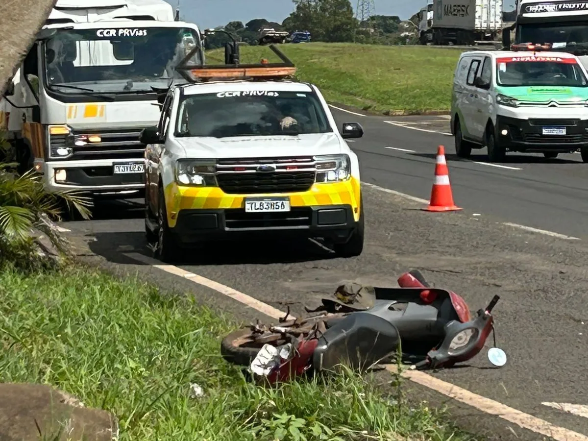 A colisão envolveu um carro, possivelmente um Chevrolet Corsa Super com placas de Apucarana, e uma motocicleta. Com o impacto, o motociclista ficou ferido e caiu sobre o asfalto, mobilizando equipes de socorro.