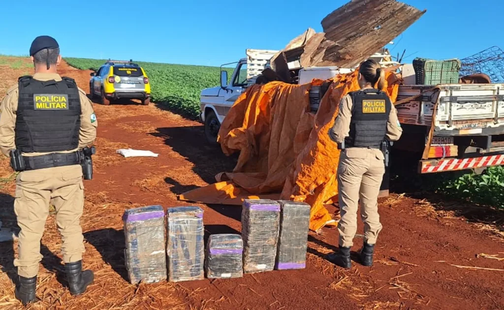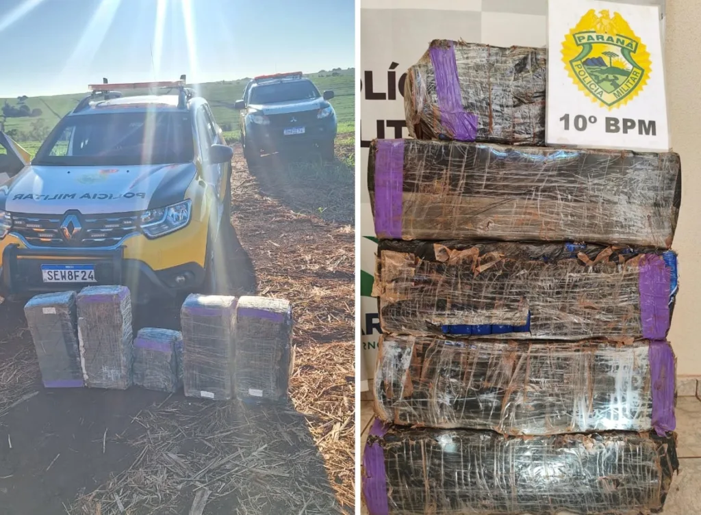Uma grande apreensão de drogas foi realizada por equipes do 10º Batalhão de Polícia Militar em uma área rural localizada entre os municípios de Marumbi e Jandaia do Sul.