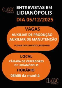 EMPREGO – Classic Couros com oportunidade de emprego em Lidianópolis 1 de dezembro de 2025 Ler notícia
