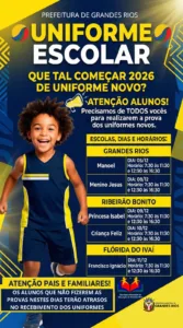GRANDES RIOS – Prefeitura convoca alunos para prova dos novos uniformes escolares de 2026 4 de dezembro de 2025 Ler notícia