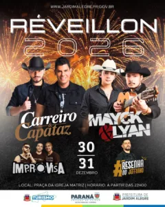 JARDIM ALEGRE – Réveillon 2026 terá dois dias de shows na Praça da Igreja 4 de dezembro de 2025 Ler notícia