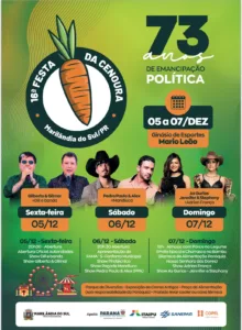 Começa nesta sexta a 16ª edição da Festa de Cenoura de Marilândia do Sul 5 de dezembro de 2025 Ler notícia