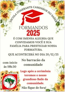 Comunidade Maila Sabrina, zona rural de Ortigueira, divisa com Faxinal – Formatura 15 de dezembro de 2025 Ler notícia