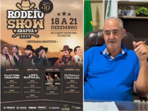 ARAPUÃ – Prefeito Manoel Salvador convida região para Rodeio Show em comemoração ao aniversário do município 19 de dezembro de 2025 Ler notícia