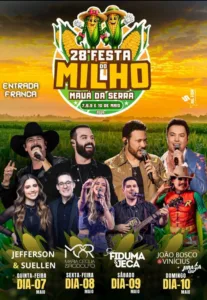MAUÁ DA SERRA – Prefeito Giva Lopes divulga programação completa da 28ª Festa do Milho 8 de janeiro de 2026 Ler notícia