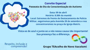NOVO ITACOLOMI – Convite para passeata em alusão ao Dia de Conscientização do Autismo 6 de abril de 2026 Ler notícia