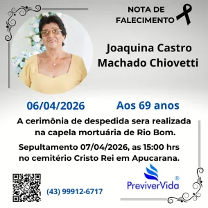 TRÁGICO – Identificada a mulher de Rio Bom, que faleceu no acidente em Marilândia 7 de abril de 2026 Ler notícia