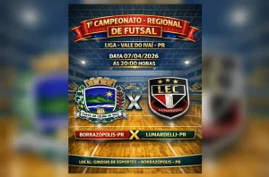 Borrazópolis recebe Lunardelli neste dia 07 de abril – Confronto no Futsal 7 de abril de 2026 Ler notícia