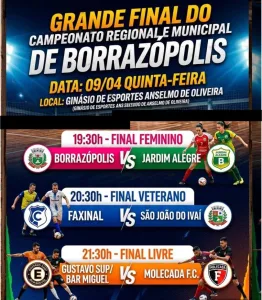 BORRAZÓPOLIS – Três finais movimentam o futsal nesta quinta-feira no ginásio 9 de abril de 2026 Ler notícia