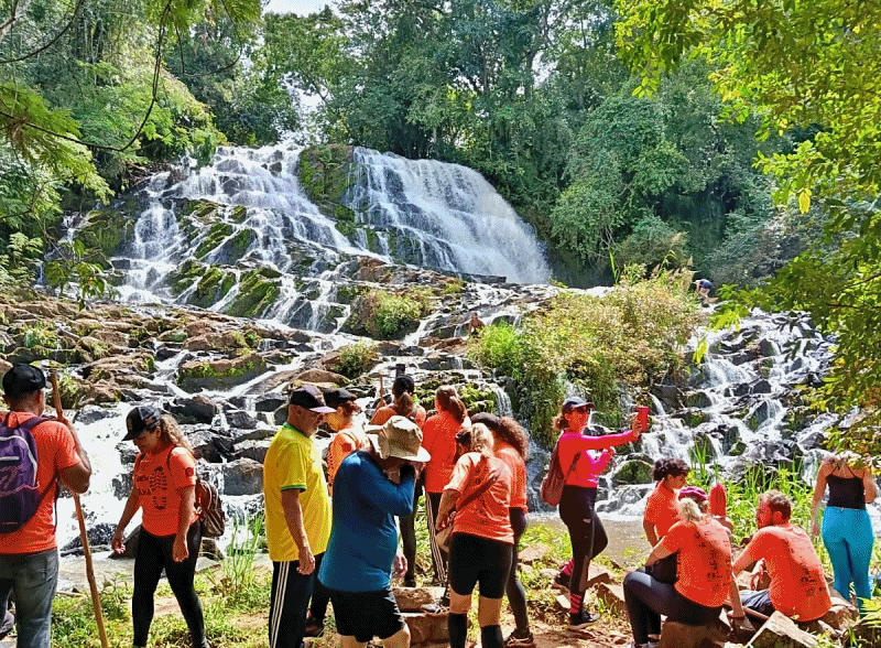 A programação começou com um café da manhã no Rancho Catavento e seguiu com uma trilha de aproximadamente cinco quilômetros, passando pela Cachoeira Ruminante e pelas cachoeiras Chicão 1 e Chicão 2. Ao longo do percurso, os participantes puderam apreciar paisagens preservadas e vivenciar contato direto com o meio ambiente.