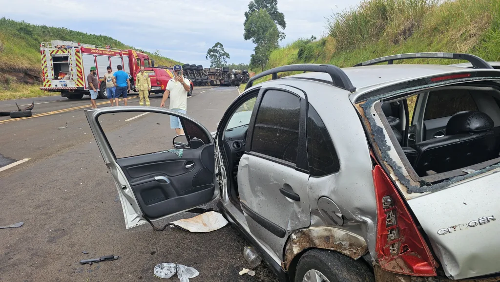 A colisão envolveu uma carreta Scania, carregada com bobinas de papel, que havia saído de Telêmaco Borba, da fábrica da Klabin, com destino a Foz do Iguaçu, e um veículo Citroën, ocupado por pessoas que saíram de Marialva e seguiam para Faxinal.