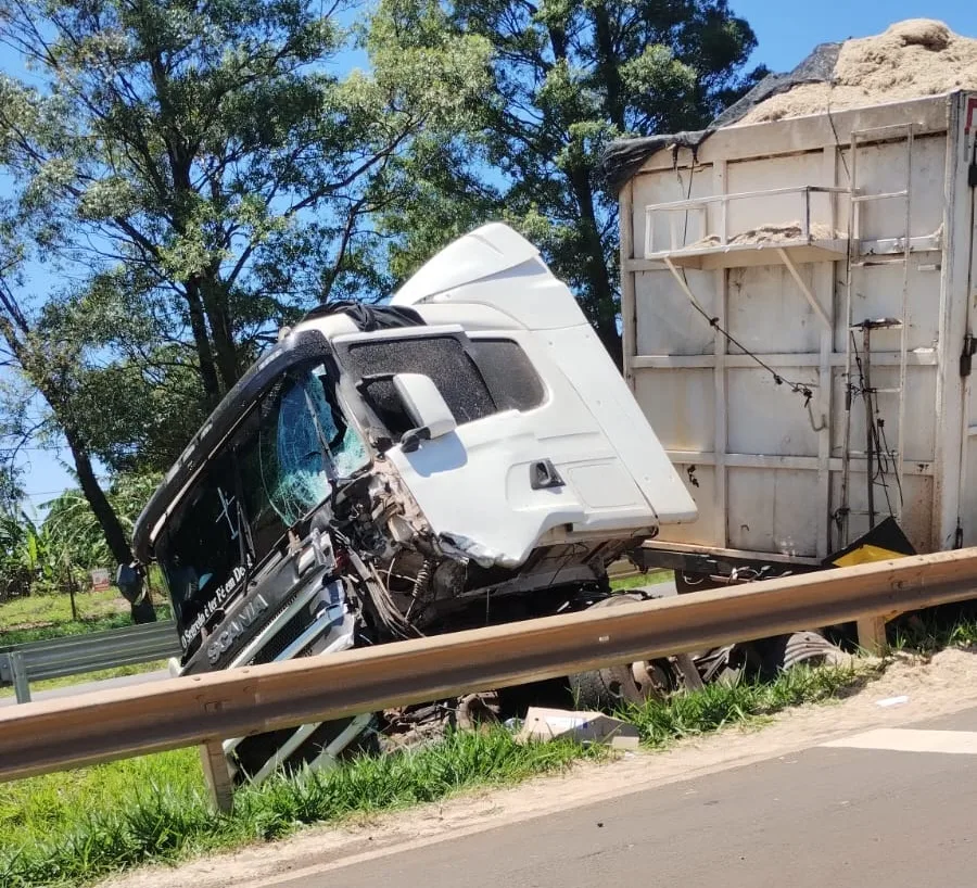 Um acidente de grandes proporções foi registrado na manhã desta terça-feira (11 de novembro) na BR-369, no trecho entre Apucarana e Arapongas, nas proximidades do monumento do Bonezão. A batida envolveu três veículos: uma van Ford Transit Minibus (emplacada em Rolândia), uma carreta Scania carregada com bagaço de cana e um Ford Fiesta Sedan. O motorista da carreta, um homem de 44 anos, foi socorrido pelo Serviço de Atendimento Móvel de Urgência (SAMU) e encaminhado ao Hospital da Providência, em Apucarana. O condutor da van ficou preso às ferragens, exigindo intenso trabalho das equipes do Corpo de Bombeiros e da concessionária CCR PR Vias. O resgate durou cerca de 50 minutos. Um passageiro da van foi visto caminhando pelo local logo após o impacto. Segundo informações repassadas no local, os três veículos trafegavam no sentido Arapongas–Apucarana. Antes do acesso que leva a Apucarana, um dos automóveis teria parado na faixa de pedestre para uma pessoa atravessar. O caminhão que vinha atrás não conseguiu frear a tempo e atingiu o Fiesta, ano 2010, cor prata e, em seguida, a van Ford Transit 2013, que estava carregada com frango congelado. A van ficou prensada contra o guard-rail, causando preocupação sobre a condição das vítimas. O corpo de bombeiros realizou cortes na estrutura e conseguiu retirar o motorista, que foi encaminhado para atendimento. Equipes da CCR PR Vias sinalizaram a área, e o fluxo permaneceu lento nos dois sentidos durante o atendimento. Motoristas no sentido Apucarana–Arapongas foram desviados para a marginal, retornando à rodovia próximo ao Clube de Campo Água Azul.