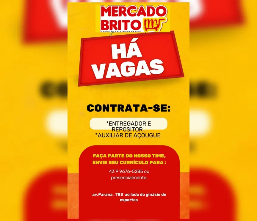 ATENÇÃO – Oportunidade de emprego no Mercado Brito de Borrazópolis