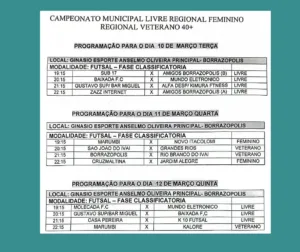 BORRAZÓPOLIS – Definidos jogos dos dias 10, 11 e 12 de março do Campeonato de Futsal 9 de março de 2026 Ler notícia