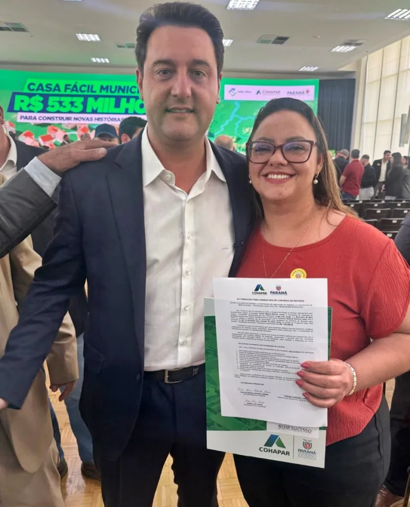 A prefeita de Bom Sucesso, Rosana Ferreira Lopes, participou nesta segunda-feira (10) do lançamento da nova modalidade do programa Casa Fácil Paraná – Municípios, durante cerimônia no Palácio Iguaçu, em Curitiba. O evento marcou mais um investimento do Governo do Estado voltado à construção de moradias para famílias em situação de vulnerabilidade social. No anúncio, o governador Carlos Massa Ratinho Junior confirmou a liberação de R$ 533 milhões para obras habitacionais em 324 municípios paranaenses com até 25 mil habitantes. Coordenado pela Cohapar, o programa prevê que cada cidade receba um número de unidades habitacionais proporcional ao tamanho da população. Bom Sucesso foi contemplada com 10 novas casas, que serão destinadas a famílias de baixa renda, contribuindo para garantir moradia digna e segurança a quem mais precisa. A prefeita Rosana Ferreira Lopes comemorou a conquista e destacou o impacto positivo da medida, reforçando o compromisso do município em buscar recursos e programas que promovam qualidade de vida e desenvolvimento para as famílias bonsucessenses.