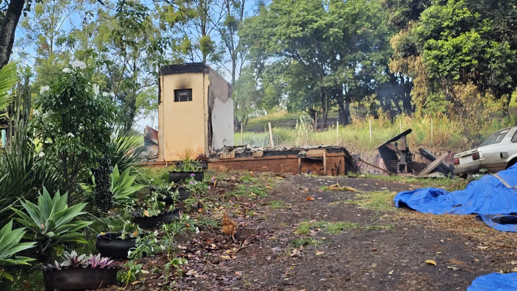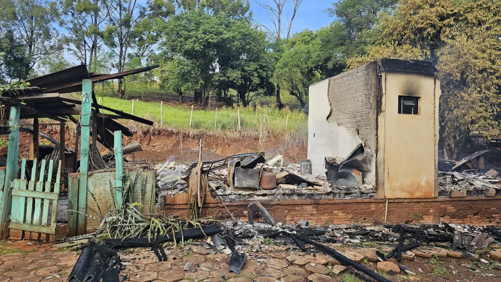 BORRAZÓPOLIS – Casa é completamente destruída pelo fogo na zona rural