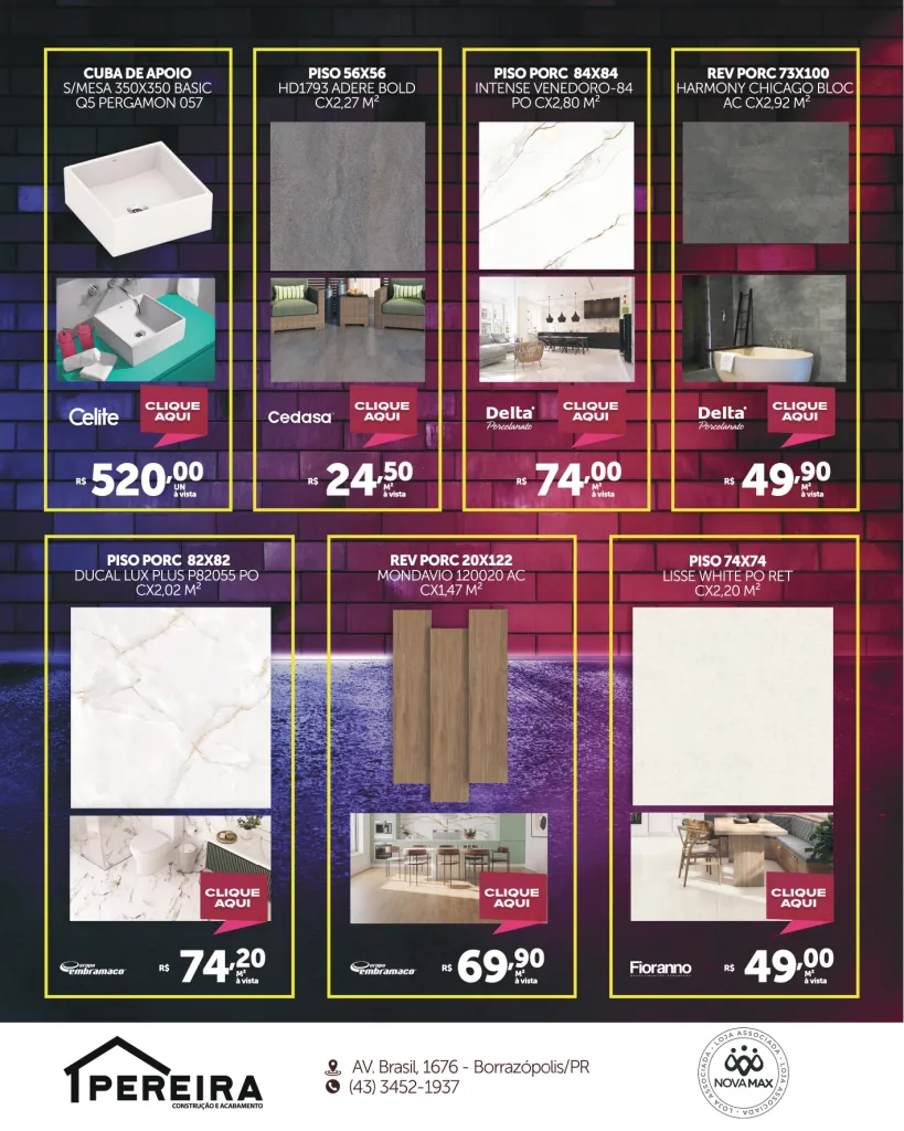 Se você está construindo ou reformando, chegou a hora de aproveitar mais uma campanha imperdível da Pereira Materiais para Construção, de Borrazópolis. A loja, que faz parte da Rede MaxPremium, é a maior e melhor da cidade, com uma grande variedade de produtos e os melhores preços da região.