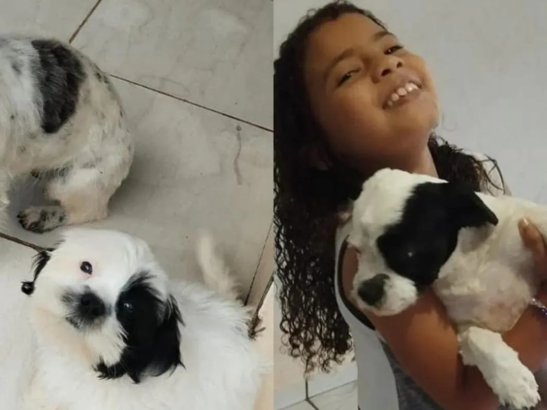 A cachorrinha atende pelo nome de Boby, é branca, com manchas pretas na região da cabeça, e foi vista pela última vez nas proximidades da residência da família.