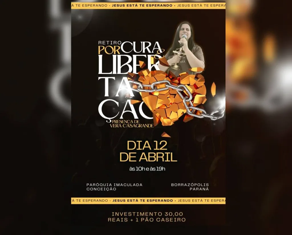 O encontro contará com a presença da missionária Vera Casagrande e promete um dia de oração, reflexão e fortalecimento espiritual. A programação terá início às 10 horas e seguirá ao longo do dia, com momentos voltados à busca por cura interior e renovação da fé.