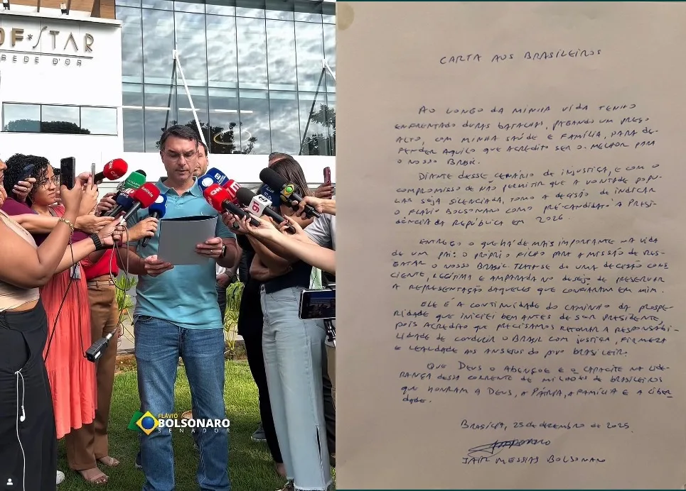 Ainda na quinta-feira, pouco antes do início da cirurgia, uma carta escrita à mão por Jair Bolsonaro foi lida pelo senador Flávio Bolsonaro, em frente ao hospital. No documento, o ex-presidente confirmou a indicação do filho como pré-candidato à Presidência da República nas eleições de 2026.