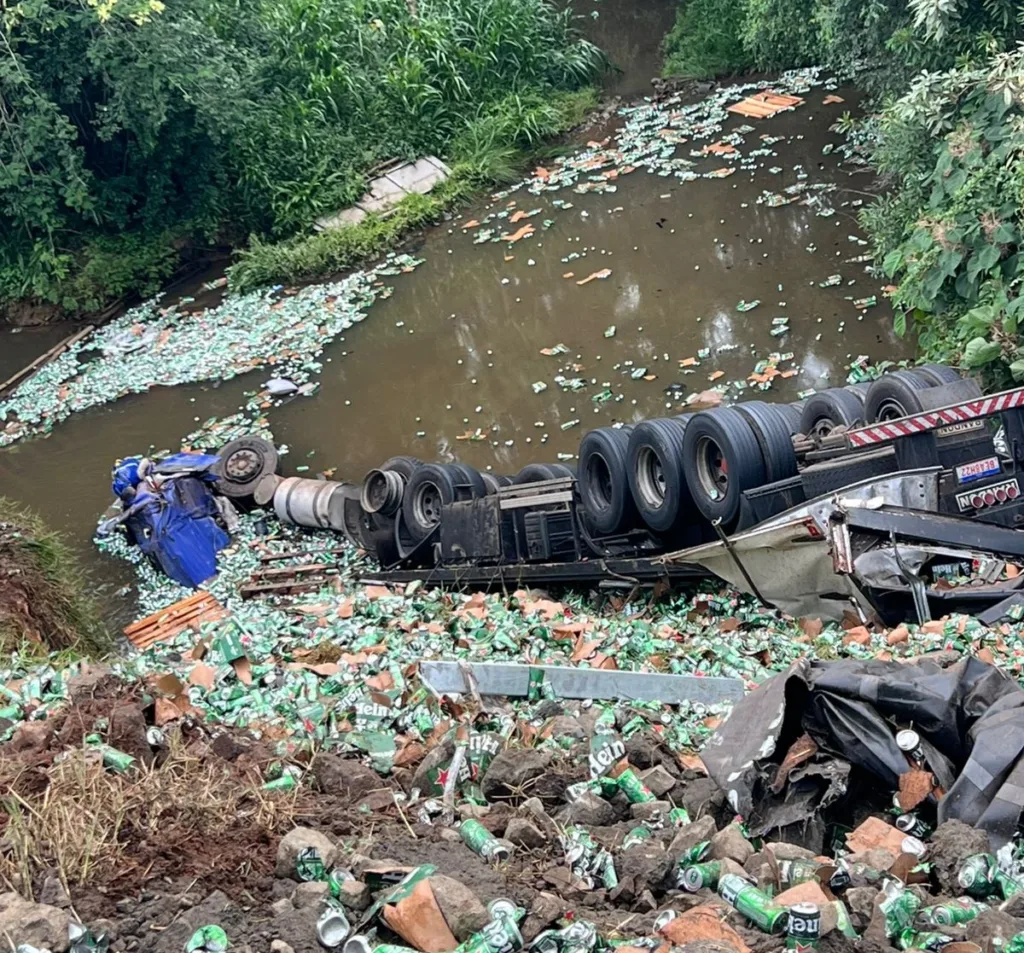 Segundo a PRF, o acidente envolveu um caminhão com placas de Ponta Grossa, atrelado a um semirreboque carregado com cervejas em lata. O veículo seguia no sentido Ponta Grossa–Imbaú quando, após uma curva em declive, saiu do leito carroçável e acabou caindo em uma ribanceira, submergindo parcialmente no Rio Charqueada.