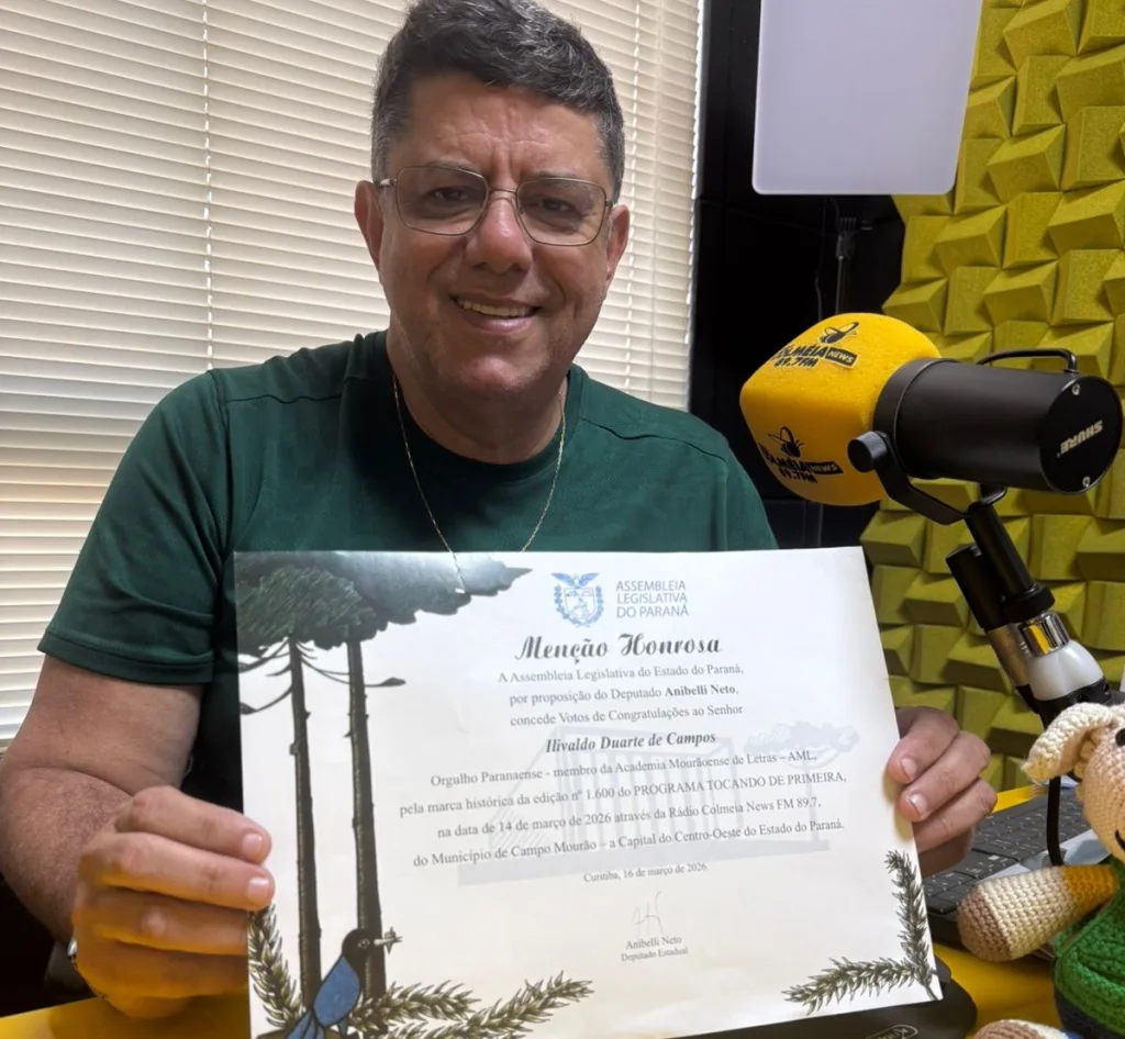 O jornalista Ilivaldo Duarte foi homenageado com uma moção de congratulações da Assembleia Legislativa do Paraná em reconhecimento à sua trajetória no jornalismo, marcada pela realização de 1.600 edições do programa de rádio “Tocando de Primeira”.