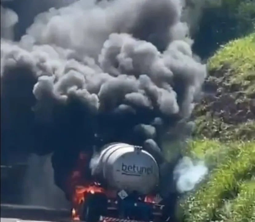 De acordo com as informações, o caminhão, com placas do estado de São Paulo, estava carregado com emulsão asfáltica. Durante o deslocamento, dois pneus do veículo estouraram. O condutor parou no acostamento para verificar a situação e, em seguida, percebeu o início de um incêndio.