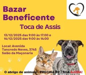 Bazar Beneficente da Sociedade Protetora dos Animais Toca de Assis – Ivaiporã 8 de dezembro de 2025 Ler notícia