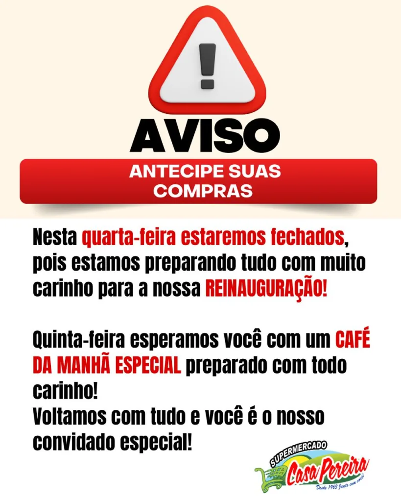 Comunicado do Supermercado Casa Pereira – Rede Nova Plus de Borrazópolis 28 de abril de 2026 LEIA MAIS