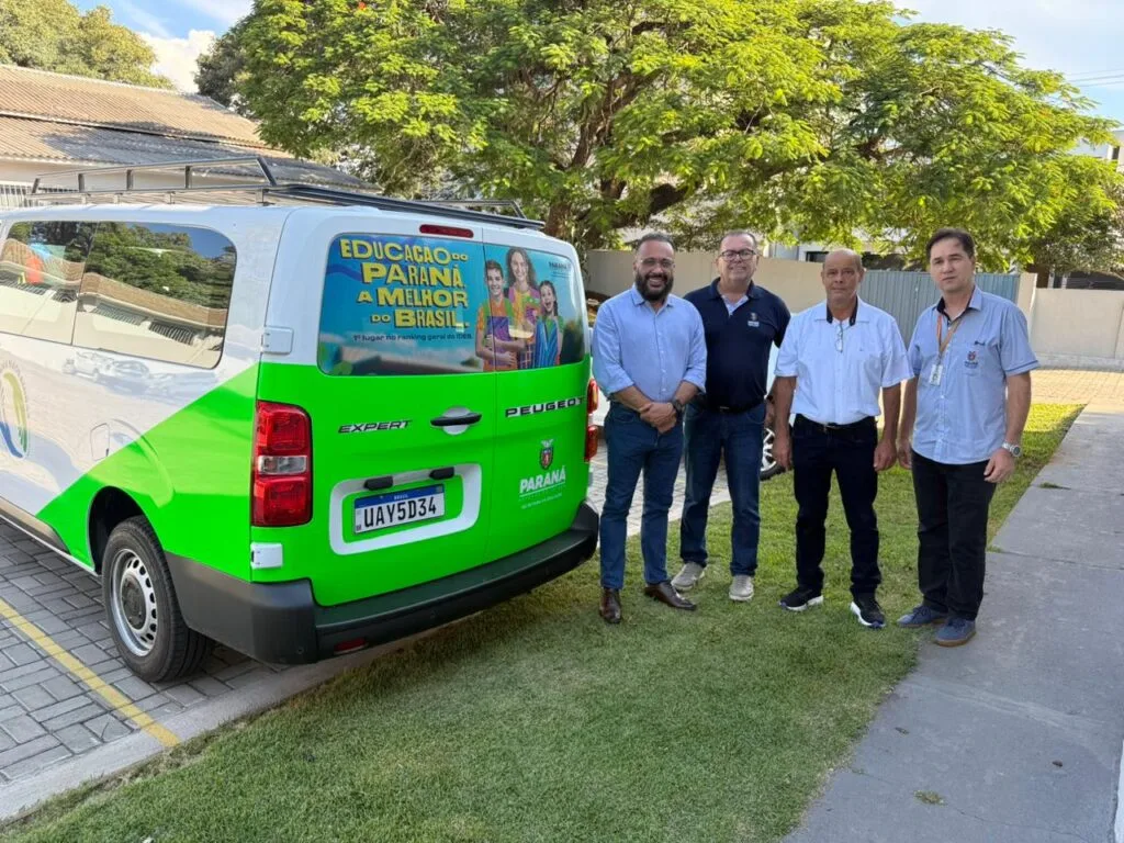 Na tarde desta segunda-feira (06/04), o presidente do Conselho Comunitário de Segurança (CONSEG) de Apucarana, Vicente Batista Junior, e o vice-presidente, Roberto Calabrese, estiveram no Núcleo Regional de Educação (NRE) para alinhar os próximos passos do Programa Mãos Amigas, iniciativa estadual que emprega Pessoas Privadas de Liberdade (PPL) em serviços de manutenção, conservação e reparos nas escolas da rede pública. A reunião contou com a presença do chefe do NRE, Vladimir Barbosa da Silva e do técnico responsável e coordenador do setor de engenharia, Roberto Antônio Tassi.