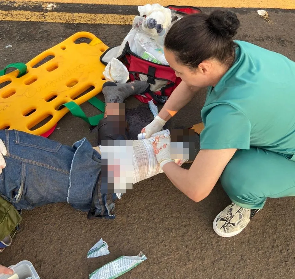 A imagem registrada pelo leitor mostra a enfermeira Ângela Teixeira Cruz, moradora de Borrazópolis e que também presta serviços para o município de Cruzmaltina, realizando os primeiros atendimentos ao motociclista até a chegada do socorro.