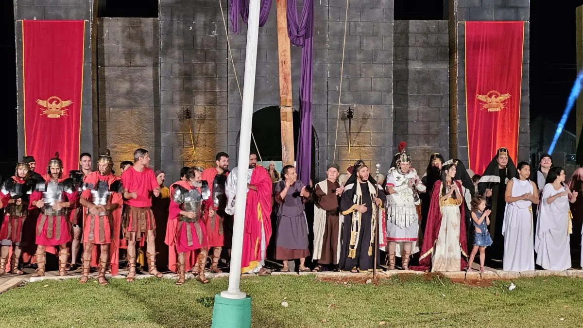 Uma noite de emoção, fé e cultura marcou o domingo, dia 15 de março, em Cruzmaltina. A apresentação teatral “Paixão de Cristo”, realizada na praça da igreja, reuniu um grande público e foi considerada um sucesso pela comunidade. O espetáculo foi apresentado por um grupo de teatro da cidade de Londrina e retratou momentos marcantes da vida de Jesus Cristo.