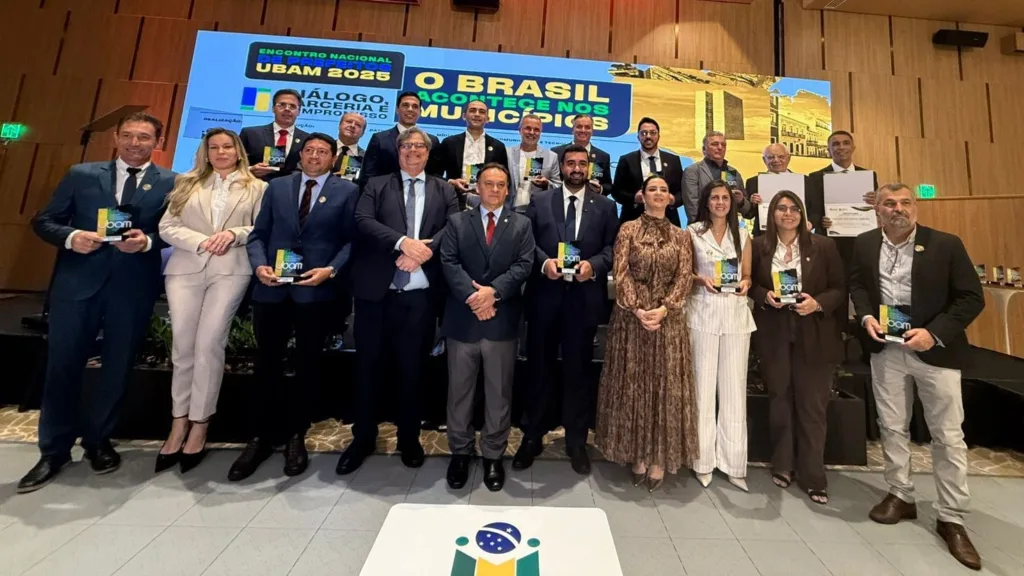 Uma realização da União Brasileira de Apoio aos Municípios (UBAM), o evento reuniu centenas de gestores públicos de todos os estados brasileiros para debater pautas municipalistas, fortalecer a gestão pública e ampliar a articulação nacional em defesa dos municípios. Durante a solenidade, 20 prefeitos foram reconhecidos como Destaque Nacional no Protagonismo da Gestão Pública — entre eles, o prefeito de Apucarana, Rodolfo Mota, cuja homenagem foi recebida pelo vice-prefeito Marcos da Vila Reis. “Um orgulho poder estar neste encontro e representar, em nome do prefeito Rodolfo, Apucarana e toda a região. A premiação é um reconhecendo aos gestores que têm contribuído para modernizar e fortalecer a gestão municipal. Na ocasião também reforçei o compromisso de Apucarana em buscar inovação, integração e mais representatividade nas discussões que impactam diretamente o desenvolvimento dos municípios brasileiros”, disse o vice-prefeito, que durante o evento manteve diálogo com o prefeito do Rio de Janeiro, Eduardo Paes.