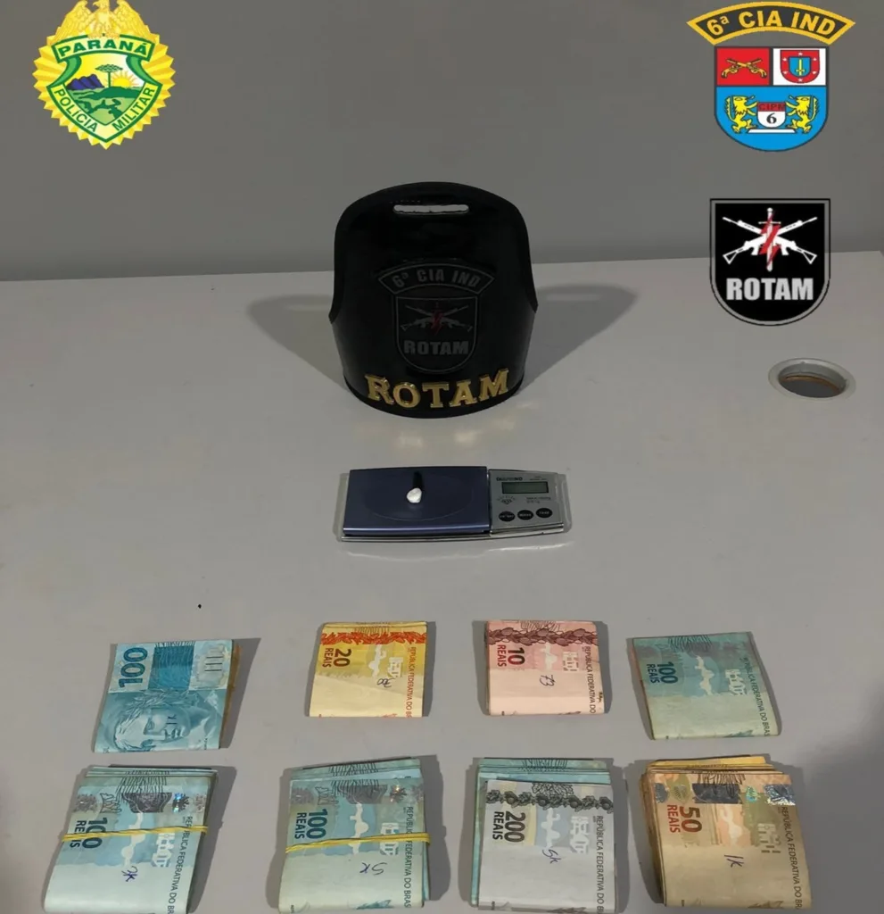 Durante a abordagem, os policiais localizaram cocaína, mais de R$ 15 mil em dinheiro, distribuídos em diversas cédulas, além de aparelhos celulares utilizados na comercialização do entorpecente e objetos empregados para fracionar a droga. O suspeito já possuía diversas passagens pelo setor policial.