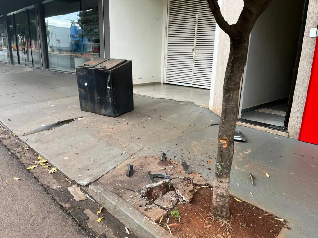 Na madrugada deste domingo, 8 de fevereiro de 2026, um veículo atingiu uma lixeira instalada na calçada da Avenida Brasil, em Faxinal. A estrutura fica em frente ao número 728 e atende moradores do Residencial Abílio Alves e também comércios das proximidades.