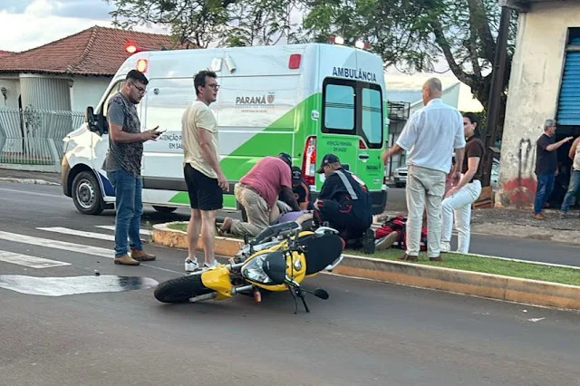 Um acidente considerado grave foi registrado no início da noite de quinta-feira (6 de novembro), em Faxinal, na esquina do Laboratório João Androaldo, na Avenida Brasil. O fato ocorreu por volta das 18h50 e envolveu uma motocicleta Honda/CB 300R, de cor amarela, e um Volkswagen Fusca azul, que estava acoplado a uma carretinha. Segundo informações apuradas no local, o condutor do Fusca seguia pela avenida e tentou fazer uma conversão à esquerda para acessar a Rua Quatorze de Dezembro, quando a motocicleta, que vinha no sentido contrário, colidiu contra a parte traseira do reboque. O impacto foi forte, e o motociclista, identificado como Gustavo Lucas Pasian, sofreu uma lesão grave na perna direita. Socorristas do Serviço de Atendimento Móvel de Urgência (SAMU) tentaram conter a hemorragia com torniquetes improvisados, mas sem sucesso. Um policial militar que atendia à ocorrência utilizou seu torniquete particular, conseguindo estancar o sangramento. A vítima foi encaminhada com urgência ao Hospital Juarez Barreto e, posteriormente, transferida para o Hospital da Providência, em Apucarana. O motorista do Fusca, que não se feriu, relatou que não percebeu a aproximação da motocicleta no momento da conversão. Conforme o boletim da Polícia Militar, ambos os veículos apresentavam débitos administrativos e foram recolhidos ao pátio. Também foi constatado que o motociclista não possuía habilitação na categoria A, para conduzir moto. A equipe do SAMU era formada pelo condutor Amarildo e pelo técnico de enfermagem Sílvio, que prestaram  atendimentos no local. As causas exatas do acidente, seriam apuradas.