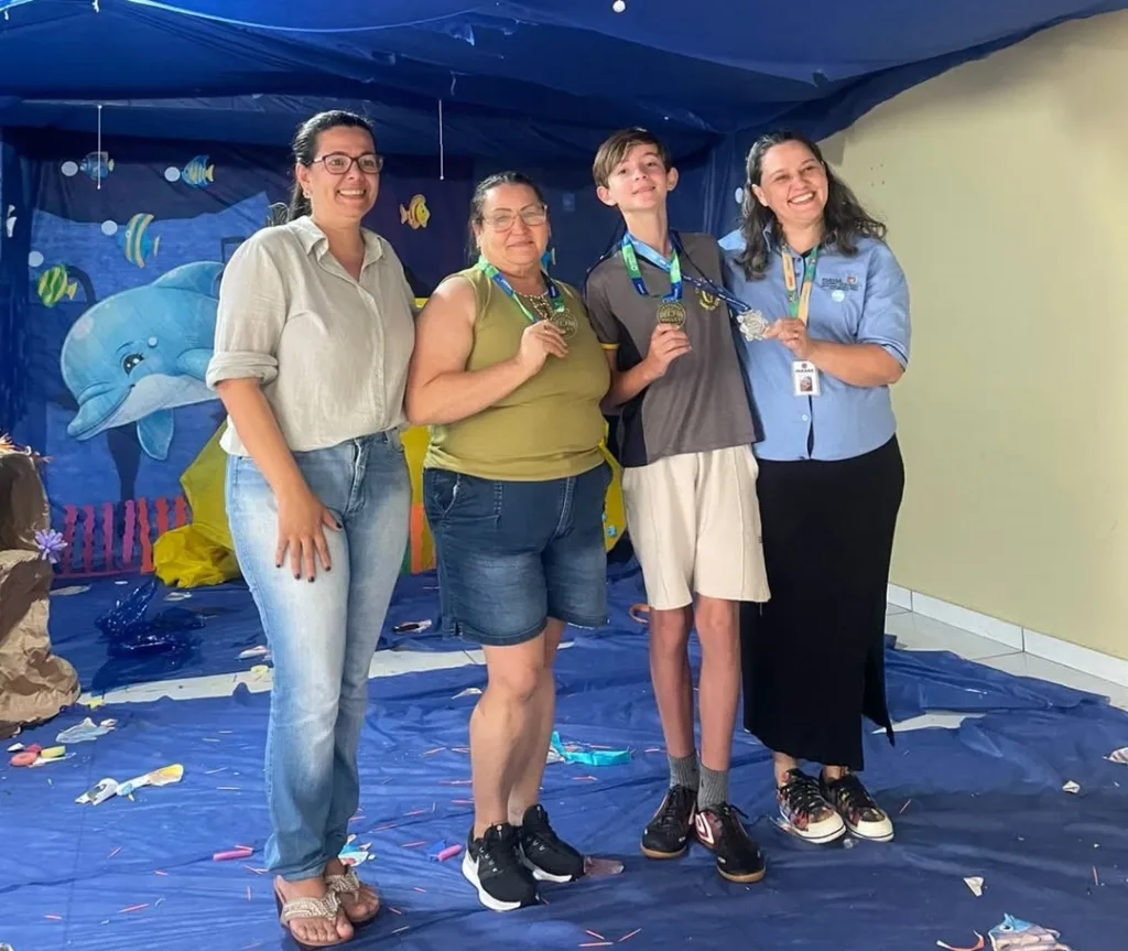 Otávio foi medalhista de prata na Maratona Tech 2025, enquanto a estudante Júlia Zanoni recebeu a medalha de bronze. Ambos foram homenageados oficialmente em cerimônia realizada na escola, com a presença da tutora de programação do Núcleo Regional de Educação de Ivaiporã. Durante a entrega, a tutora reforçou palavras de incentivo aos alunos e reconheceu o esforço das equipes escolares. O tutor Anderson Tracz também participou do momento, sendo agradecido pela parceria e apoio.