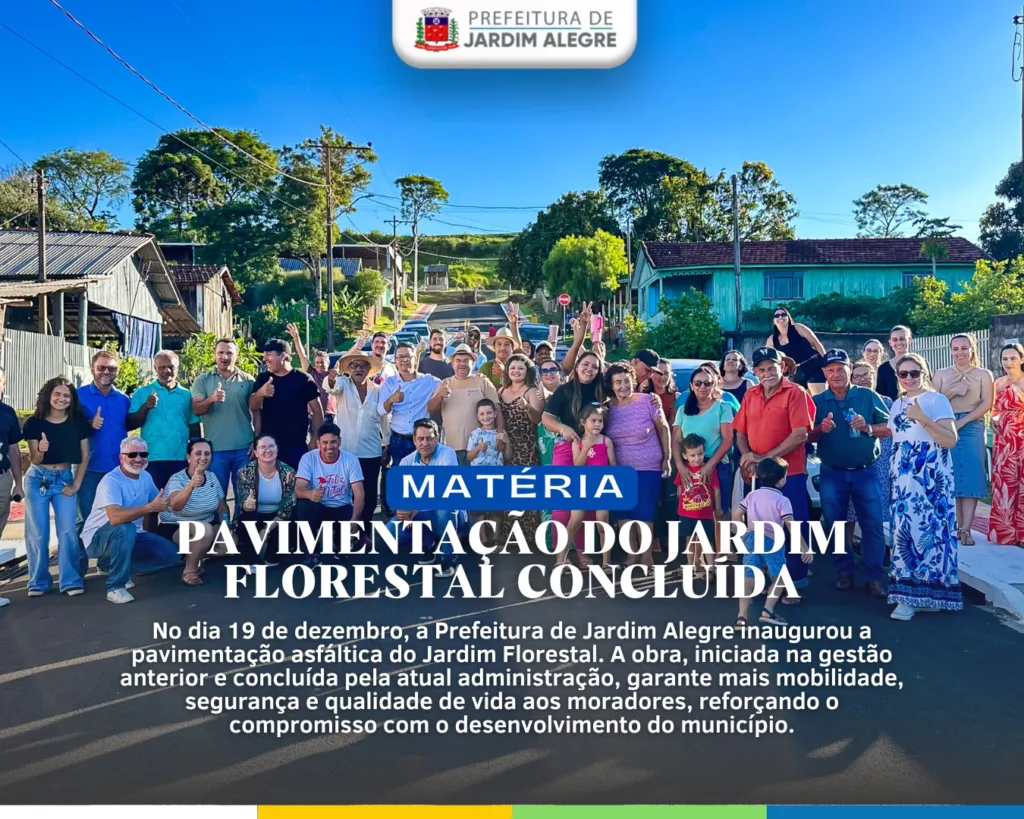 MAIS FOTOS – A Prefeitura de Jardim Alegre realizou, no dia 19 de dezembro, a inauguração da pavimentação asfáltica do Jardim Florestal, uma obra que representa avanço significativo em mobilidade urbana, segurança e qualidade de vida para os moradores do bairro.