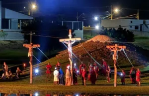 Após novas buscas, o indivíduo foi localizado em via pública. Ele apresentava sinais evidentes de embriaguez, vestes sujas de terra e resistência às ordens policiais. Diante do descumprimento da medida protetiva, foi dada voz de prisão.