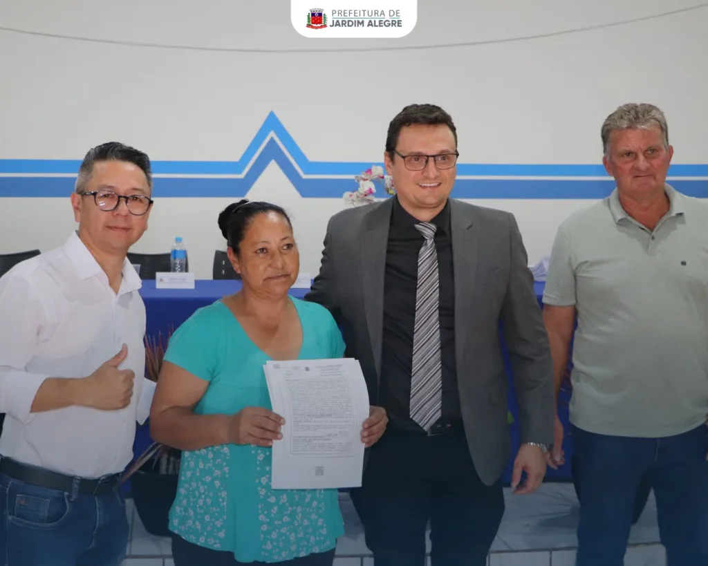 A Prefeitura de Jardim Alegre acompanhou, na noite desta quarta-feira, 26 de novembro, a entrega de 99 títulos de propriedade a moradores do Conjunto Amador Gonçalves, por meio do Programa Moradia Legal, desenvolvido pelo Tribunal de Justiça do Paraná. O evento contou com a presença do juiz da Comarca de Ivaiporã, José Chapoval Cacciacarro, além de representantes do Executivo e do Legislativo municipal.