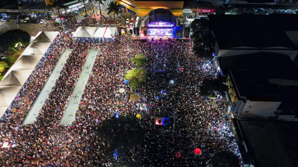 Maiara e Maraisa reuniram cerca de 40 mil pessoas na Praça Rui Barbosa, na noite desta quarta-feira (28), no maior show público já realizado em Apucarana, dentro da programação dos 82 anos do município. A dupla embalou o público com seus principais sucessos e participou do tradicional “Parabéns a Você”, ao lado de autoridades e da população, em meio a fogos de artifício e ao bolo comemorativo.