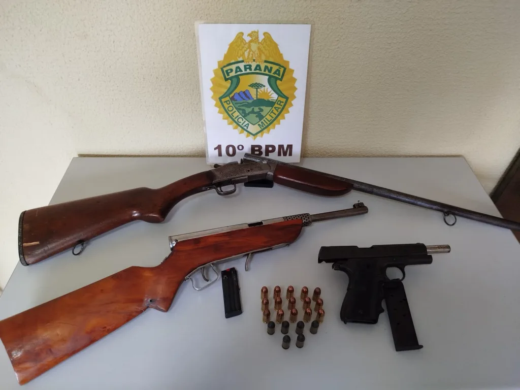 APREENSÕES – Entre o armamento retirado de circulação estão uma pistola calibre .45 com 21 munições, uma espingarda calibre .22 da marca Winchester e uma espingarda calibre .32 da marca Boito.