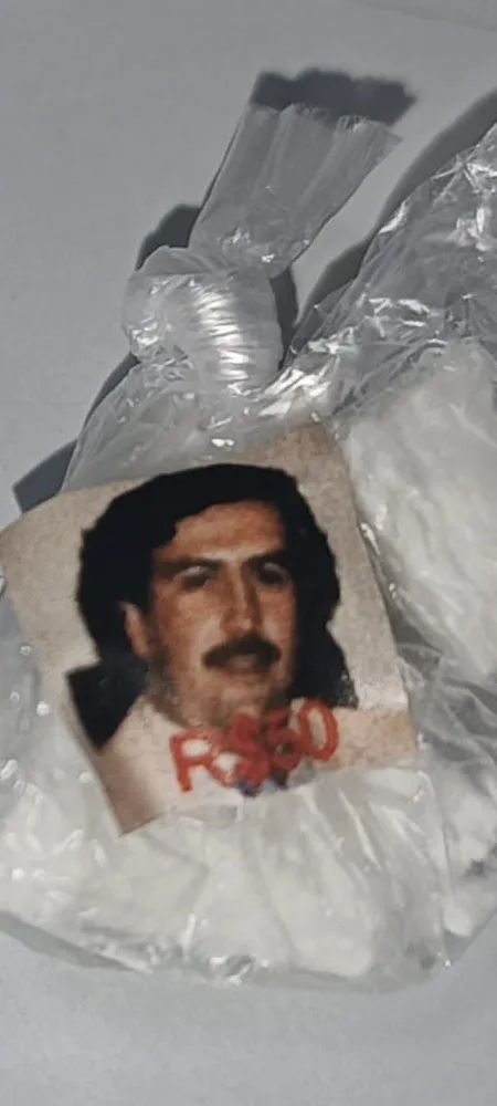 No interior do banco foram apreendidas 185 porções de cocaína já fracionadas, sendo 160 delas com adesivos da imagem de “Pablo Escobar”, além de 16 porções de maconha com a identificação “Califórnia Bob Marley” e várias embalagens vazias. Diante do flagrante, os dois homens receberam voz de prisão e foram encaminhados, juntamente com as drogas e o veículo, à autoridade competente para as providências cabíveis.