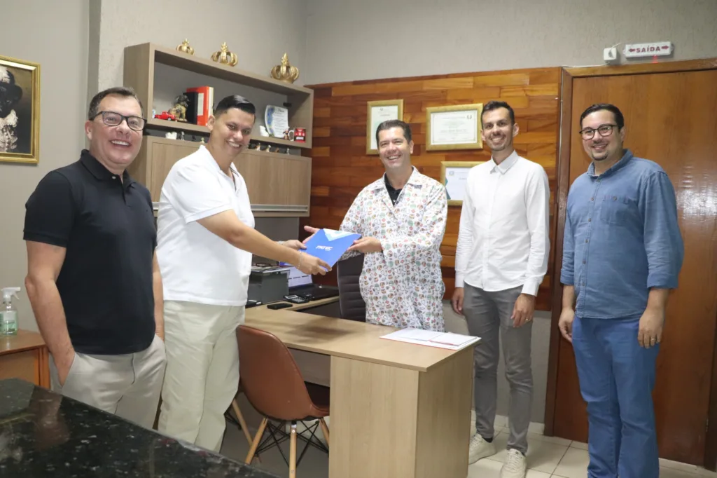 O diretor-geral da Fatec Ivaiporã, Fábio Costa, diretor acadêmico Roni Ferreira, e os coordenadores Paulo Roberto Nunes de Góes (Medicina Veterinária) e José Henrique Cid de Brito (Fisioterapia) convidaram o médico veterinário Fernando Salla, que é proprietário da Clinicão, há 25 anos, para ser padrinho das turmas dos cursos da área da Saúde, na Cerimônia do Jaleco, que será realizada no dia 20 de março no salão da Paróquia Santíssima Mãe de Deus.