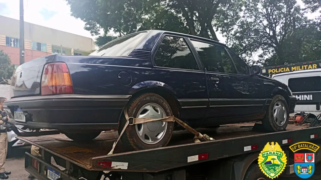O veículo GM Monza SL EFI, furtado na noite anterior na Rua Renê Camarco de Azambuja, foi recuperado pela Polícia Militar na madrugada desta quinta-feira, dia 29 de janeiro de 2026, em Apucarana.
