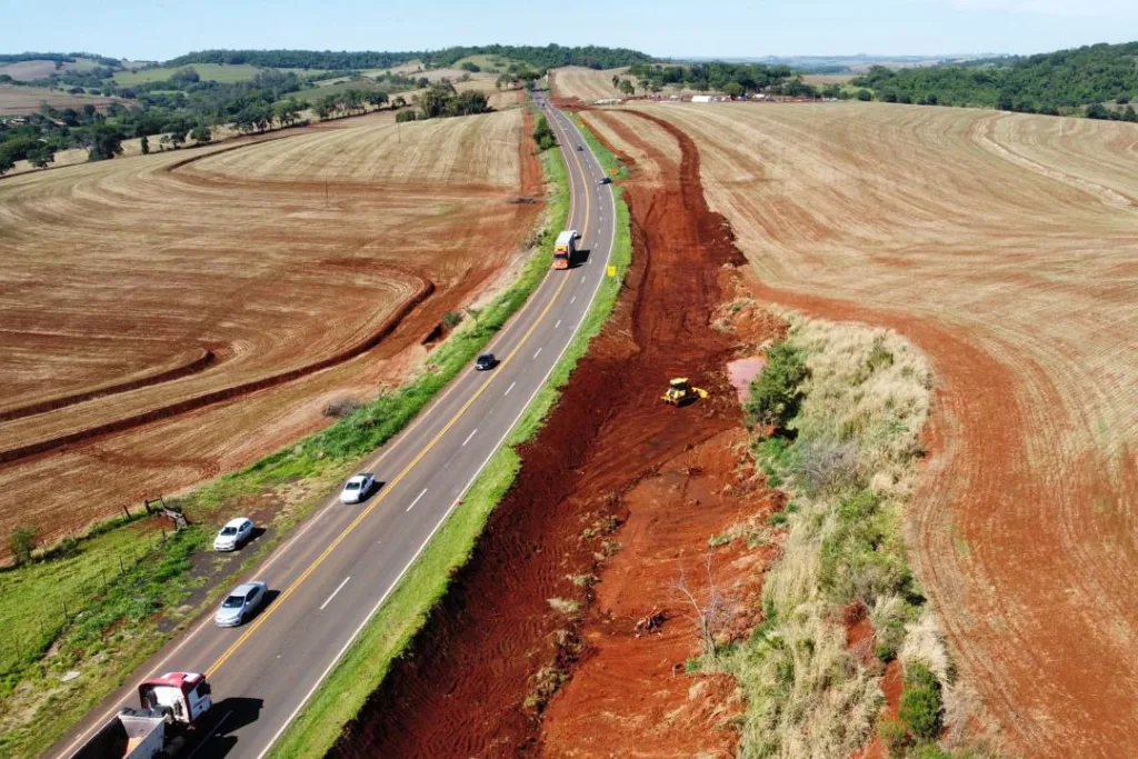 OBRA – Estão sendo duplicados 23,8 quilômetros da PR-445 nesta nova obra, um investimento de R$ 470 milhões. Ela inclui também oito novas pontes, viadutos nos acessos a Guaravera (PR-538) e Taquaruna (PR-532), retornos, correções de traçado e restauração da pista existente.