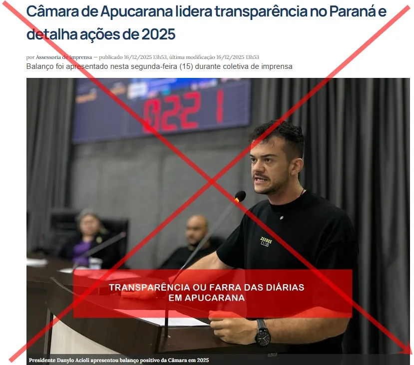 BERIMBALADAS – Enquanto a Câmara Municipal de Apucarana divulga nota oficial afirmando que o Legislativo é o mais transparente do Paraná e apresenta um balanço positivo das ações de 2025, dados oficiais do próprio sistema da Casa revelam um cenário que tem gerado críticas e desconfiança na população: o alto volume de gastos com diárias, considerado por servidores e observadores políticos como o maior da história recente do Legislativo local, sendo mais de 680 mil até o início de dezembro de 2025, ou seja, menos de um ano.