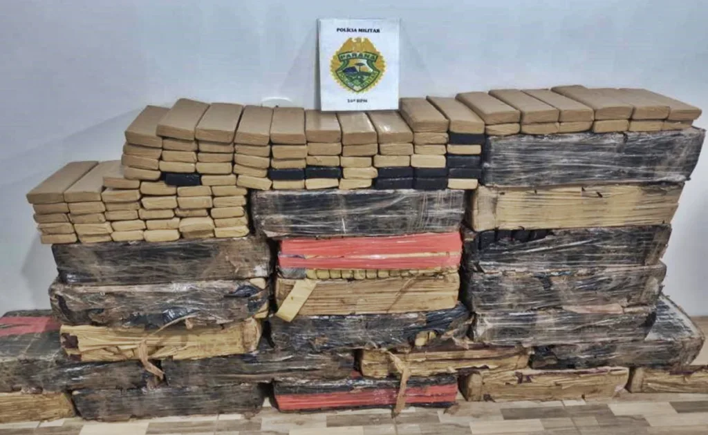 A Polícia Militar de Manoel Ribas apreendeu uma grande quantidade de drogas durante a madrugada de segunda-feira, 19 de janeiro de 2026, no bairro Santa Cecília.