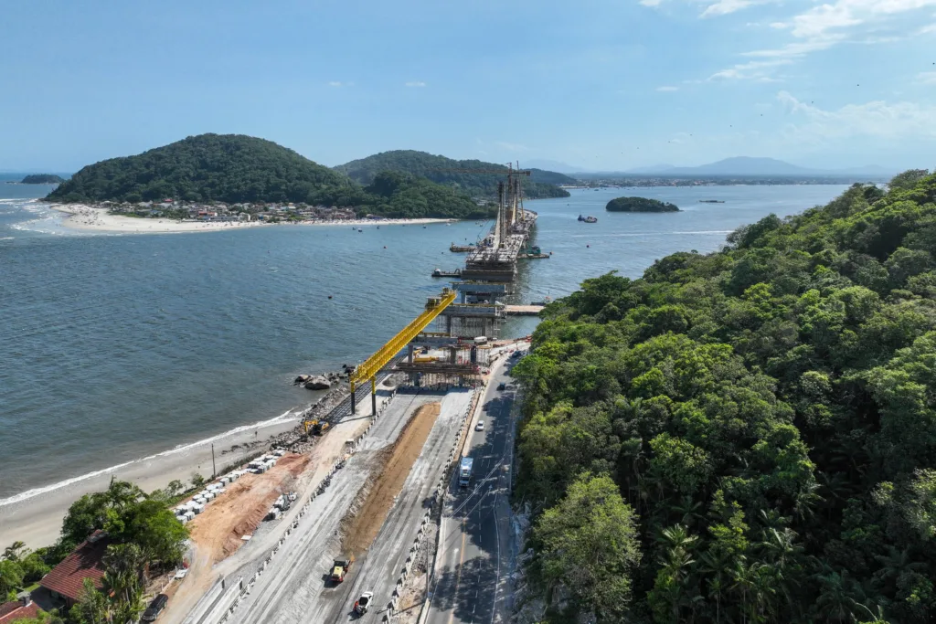 No lado de Guaratuba, o trecho pré-moldado foi totalmente concluído em novembro de 2025. A concretagem das lajes do tabuleiro nesse segmento teve início em abril de 2025 e seguiu de forma contínua até a finalização das 16 lajes, que compõem integralmente o trecho pré-moldado deste lado da ponte. Mais detalhes no AEN